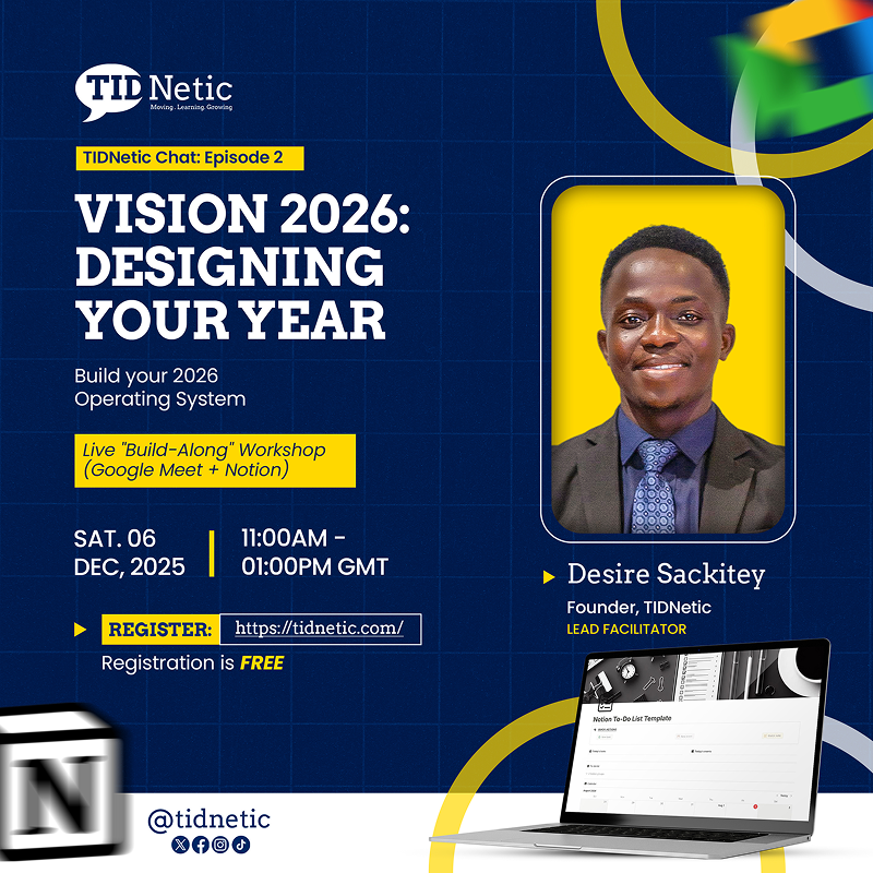 Join TIDNetic Founder Desire Sackitey for the final TIDNetic Chat of 2025. This is not a webinar where you just sit and listen. This is a live Design Workshop.